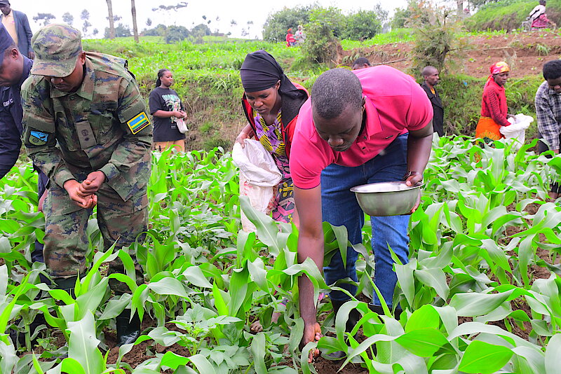Kuri uyu wa 06 Ugushyingo 2023, Umuyobozi w' Akarere Bwana Hildebrand NIYOMWUNGERI ari kumwe na Lt Col. John Agaba, Umuyobozi w' Inkeragutabara mu Karere n' abari bahagarariye inzego zinyuranye, yifatanyije n’ Abaturage bo mu Murenge wa Tare mu muganda udasanzwe wo kubagara ibigori hakoreshejwe ifumbire mvaruganda ya DAP.
